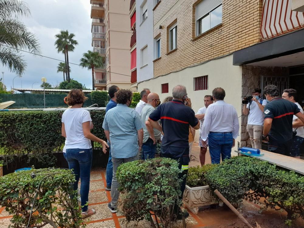 Esta mañana Benicàssim recuperaba poco a poco la normalidad tras las lluvias torrenciales e inundaciones de ayer. El presidente de la Diputación de Castellón, José Martí, ha visitado esta mañana junto a la alcaldesa de Benicàssim, Susana Marqués, y la directora territorial de Presidencia en Castellón, Eva Redondo, la zona 0 afectada por las inundaciones causadas por las fuertes lluvias de ayer domingo que inundaron muchos puntos del término municipal. Han visitado la calle Sigalero y han bajado hacia la playa, donde han accedido a algunos apartamentos para interesarse por el estado en el que se encontraban y comprobar si los residentes habían sufrido daños personales, que afortunadamente no se han producido. Por lo pronto, aún no se han cualificado los daños materiales que ha causado el temporal.