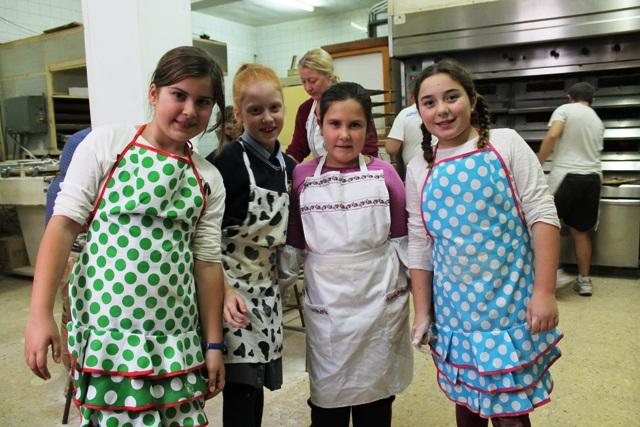 La reina de las fiestas, Ruth Villanueva Llobell, acompañada de sus damas, Neus Ferrer Nacher, Andrea Pérez Alonso y Daniela Angelenius, no han querido perderse el comienzo de la elaboración de este dulce tradicional y han acudido tras la mañana de cole, al Horno Paquita de Benicàssim, donde han colaborado en la preparación de les coquetes.