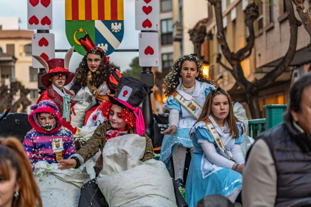 Benicàssim se ha inundado de color esta tarde con el desfile de Carnaval, que ha arrancado a las 18 horas desde la avenida Barcelona y ha transcurrido por la calle Santo Tomás hasta la plaza les Corts. Varios centenares de participantes realizaron el desfile en el que participaron las Reinas de las Fiestas, Andrea y Marta, y su corte de Honor formada por festeros, así como una decena de grupos de baile.
