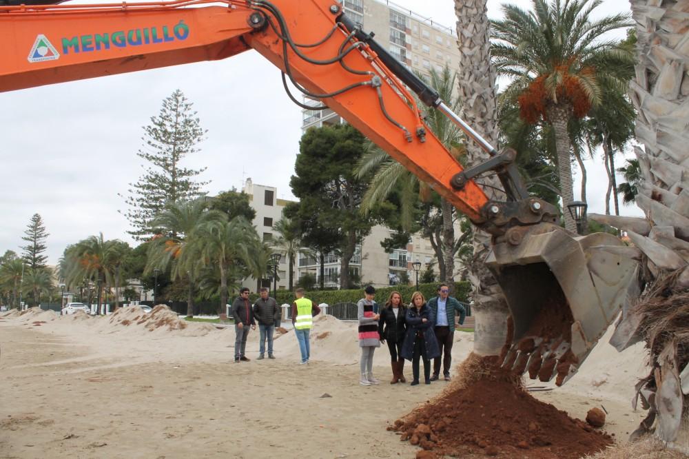 Dentro de las actuaciones con carácter de urgencia que se están realizando estos días en Benicàssim hay que destacar que alrededor de cien palmeras han sufrido la eliminación de la tierra y arena que estaban sujetando las raíces y han quedado al descubierto. Por ello ahora hay que hacer un recubrimiento de todo el sistema radical aportando tierra vegetal que se encargará de hacer una cohesión. Como ha añadido Elena Llobell, “el recubrimiento es fundamental y se realiza con carácter de urgencia porque ha habido varios días de sol potente y se están quemando las raíces y por ello hay que taparlas cuanto antes”.