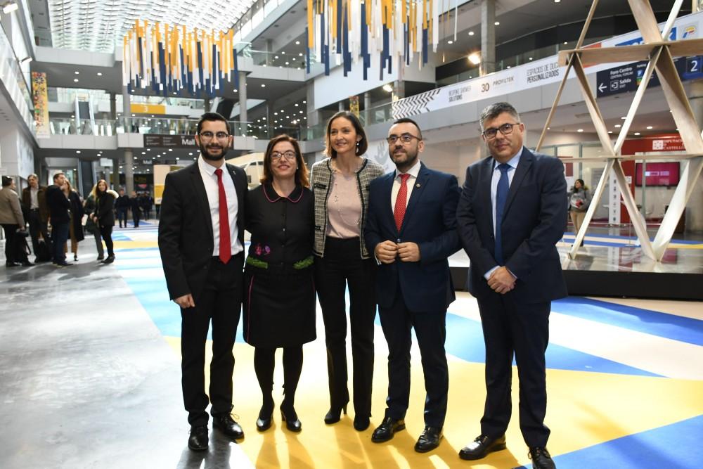 president de la Generalitat, Ximo Puig, i la ministra d'Indústria, Reyes Maroto, en la inauguració del certamen. D'aquesta manera, l'alcalde ha volgut mostrar el suport de l'Ajuntament a la indústria ceràmica de Vila-real, principal motor de l'economia local. Benlloch ha visitat els expositors de diverses empreses ceràmiques, per a conéixer les últimes novetats del sector. "La ceràmica és una indústria potent i tremendament innovadora, base fonamental del projecte de Ciutat de la Ciència i la Innovació que abanderem i eix de desenvolupament i creació de riquesa i ocupació al ciutat, que se situa de nou com el muncipi de més de 40.000 habitants amb menys atur de la Comunitat. Sense la ceràmica, aquest lideratge no seria possible", assegura Benlloch.