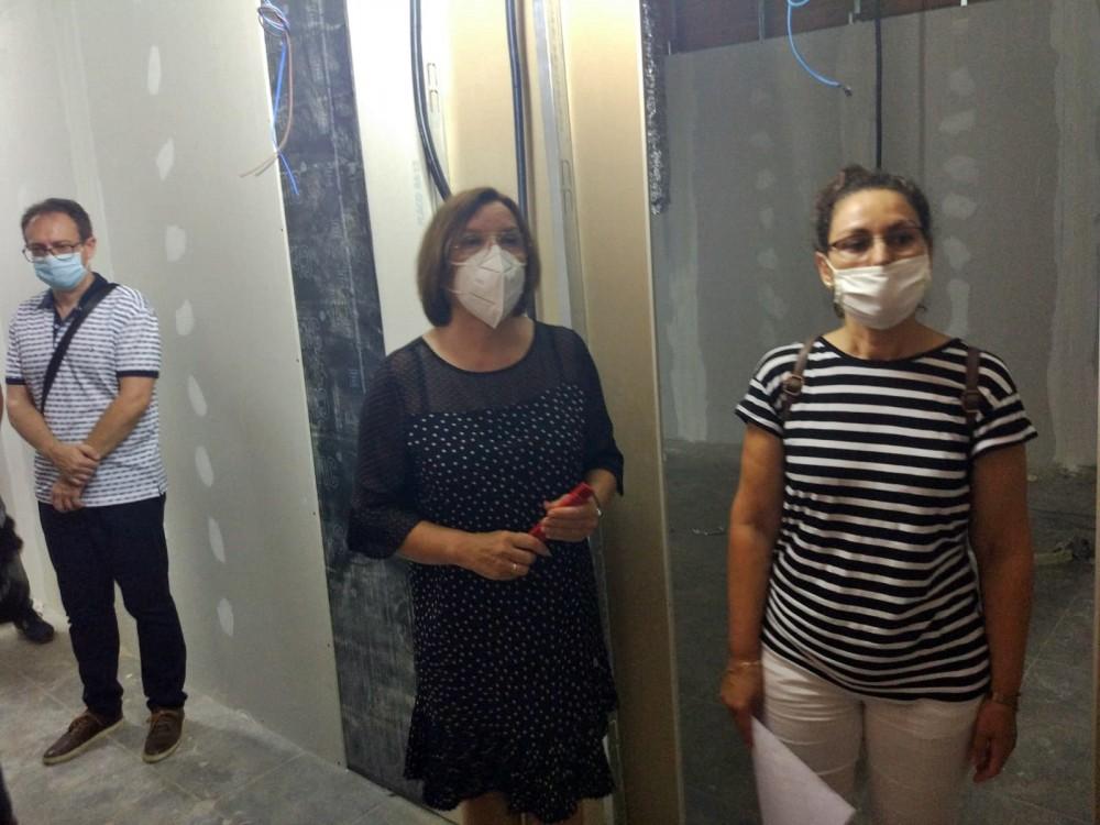 L'alcaldessa, Xaro Miralles, acompanyada del regidor d'Urbanisme, Román Sánchez, ha visitat avui les obres d'adequació d’este local municipal, on s'estan adequant tres noves aules per a la Universitat Popular (UP) per als cursos de Dibuix i Pintura i Restauració de Mobles, i un espai per a l'Associació Betlemística del Baix Maestrat.
