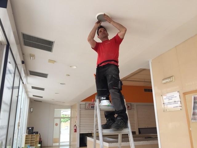 Los trabajos, que se alargarán durante las próximas semanas, contemplan el cambio de más de 130 luminarias entre tubos y downlights, distribuidas entre la sala principal, los almacenes y los baños.