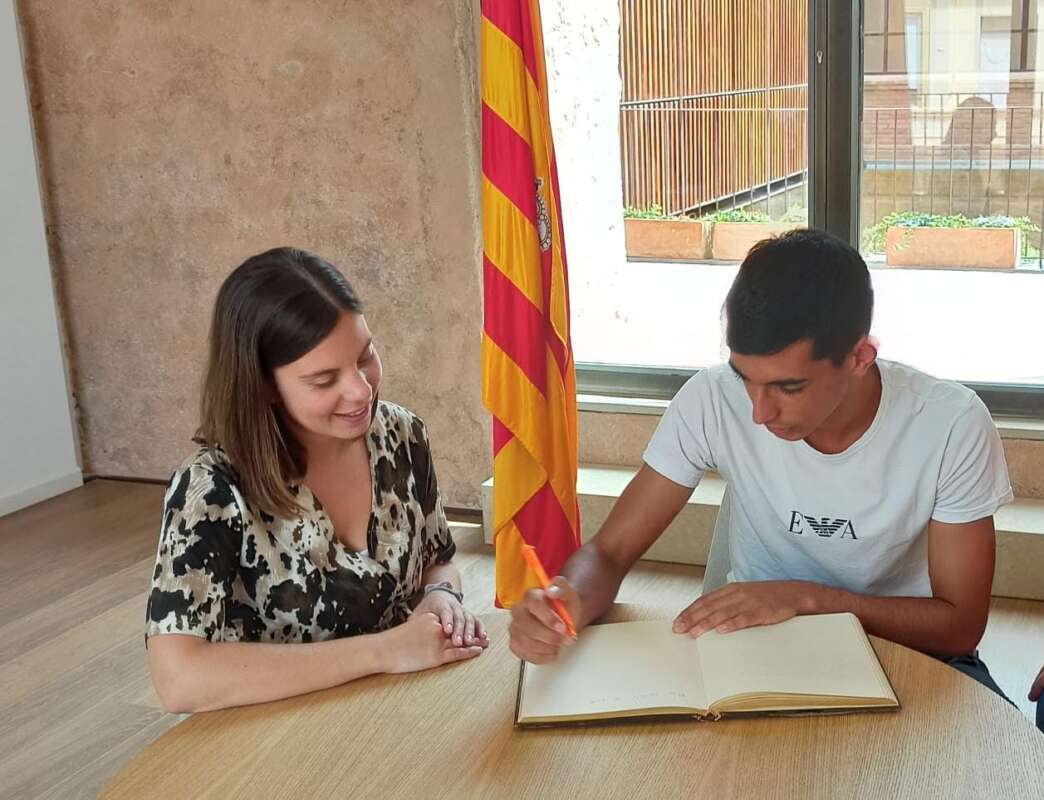 L'atleta Iker Moreno Morata, de 17 anys, ha rebut la insígnia d’honor de l’Ajuntament de Betxí de mans de l’alcaldessa Carla Nebot, qui ha acollit a l’esportista al seu despatx per a atorgar aquest distintiu i que Moreno signara el llibre d’honor de l’Ajuntament.