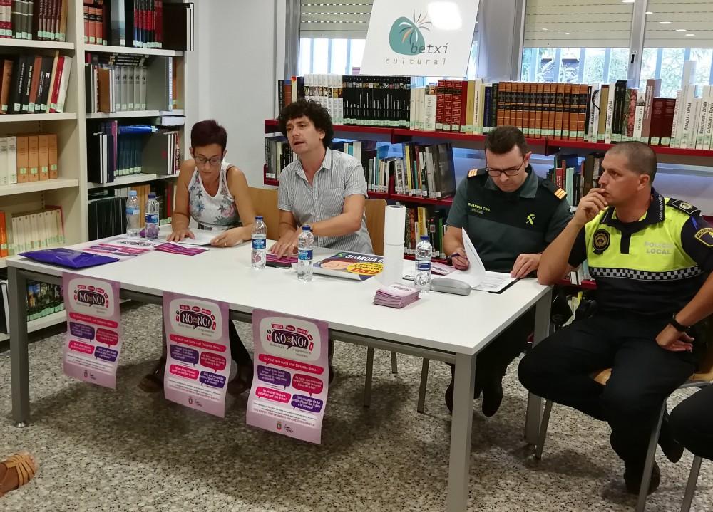 L'Ajuntament de Betxí ha presentat públicament la campanya contra les agressions sexistes 'No és No' que es durà a terme al llarg de la pròxima setmana, dins de les festes patronals de la localitat. A través d'una xerrada a la qual han acudit l'alcalde de la localitat, Alfred Remolar, voluntàries del col•lectiu Femme Força Betxí i representants de la guàrdia civil i policia local, s'han explicat els detalls de les actuacions que s'activaran en els pròxims dies.