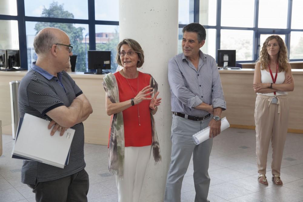 La rectora de la Universitat Jaume I de Castelló, Eva Alcón, acompanyada pel vicerector d'Investigació i Transferència, Jesús Lancis i el comissionat per a la coordinació del Gabinet de Rectorat i l'Impuls Digital, Francesc Esteve, així com pel director de la Biblioteca, Vicent Falomir, ha felicitat a tot el personal que ha treballat en la consecució d'aquesta nova ISO.
