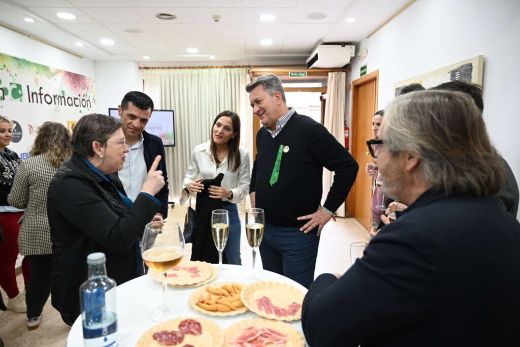 Y también con la alcaldesa de Almassora y diputada provincial, María Tormo, que se encontró en la bodeguilla con algunos de los trabajadores de la Diputación Provincial.
