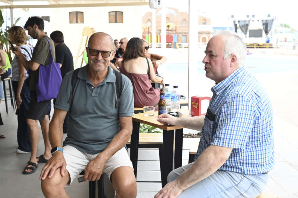 Ignasi Garcia, portavoz de Compromís en el Ayuntamiento de Castelló , acompañado por Quique Castelló, del Ayuntamiento de Almenara, comentaba a Susana Barberá que su grupo está dispuesto a presentar una moción en el próximo pleno municipal, para solicitar que Castellón se integre en el Consorcio Provincial del Agua.