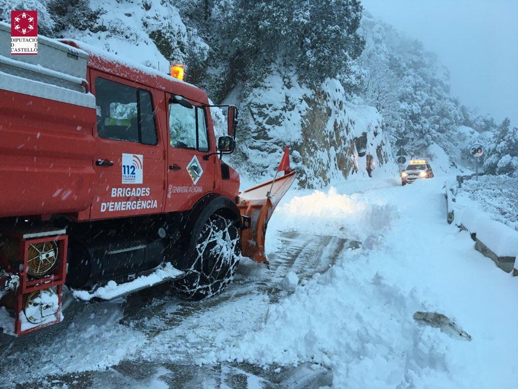 El Consorcio Provincial de Bomberos de Castellón mantiene activado la totalidad del dispositivo frente a nevadas. Un dispositivo que incluye, entre otros, 18 equipos de máquinas quita nieves, 9 vehículos salero, 200 toneladas de sal, así como un dispositivo humano de cerca de 200 efectivos. Paralelamente, se está trabajando ta
