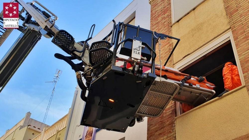 Bomberos del parque comarcal del Baix Maestrat han colaborado esta mañana en Càlig con medios sanitarios en la evacuación de su domicilio de una mujer con obesidad y necesidad urgente de traslado al hospital comarcal de Vinaròs.