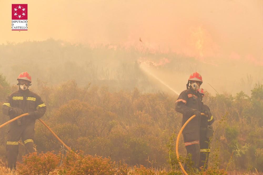 Cabe recordar que junto a los efectivos del Consorcio de Bomberos de Castellón combaten medios de otras administraciones tales como los Bomberos Forestales de Generalitat, Brigadas Helitransportadas, Unidad Militar de Emergencias, Bomberos del Ayuntamiento de Castellón y medios de otras comunidades, concretamente Aragón y Castilla La Mancha.