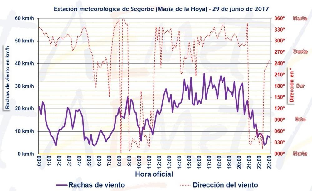 Aunque durante la mañana se consideraba posible poder controlar el fuego durante la jornada, las rachas de viento han dado al traste con las probabilidades más positivas. Esta tarde, a las 19:00 horas la estación Estación meteorológica Masía de la Hoya (Segorbe), apuntaba una situación estable con prevalencia de viento de noroeste, con rachas de 30 km/h.
