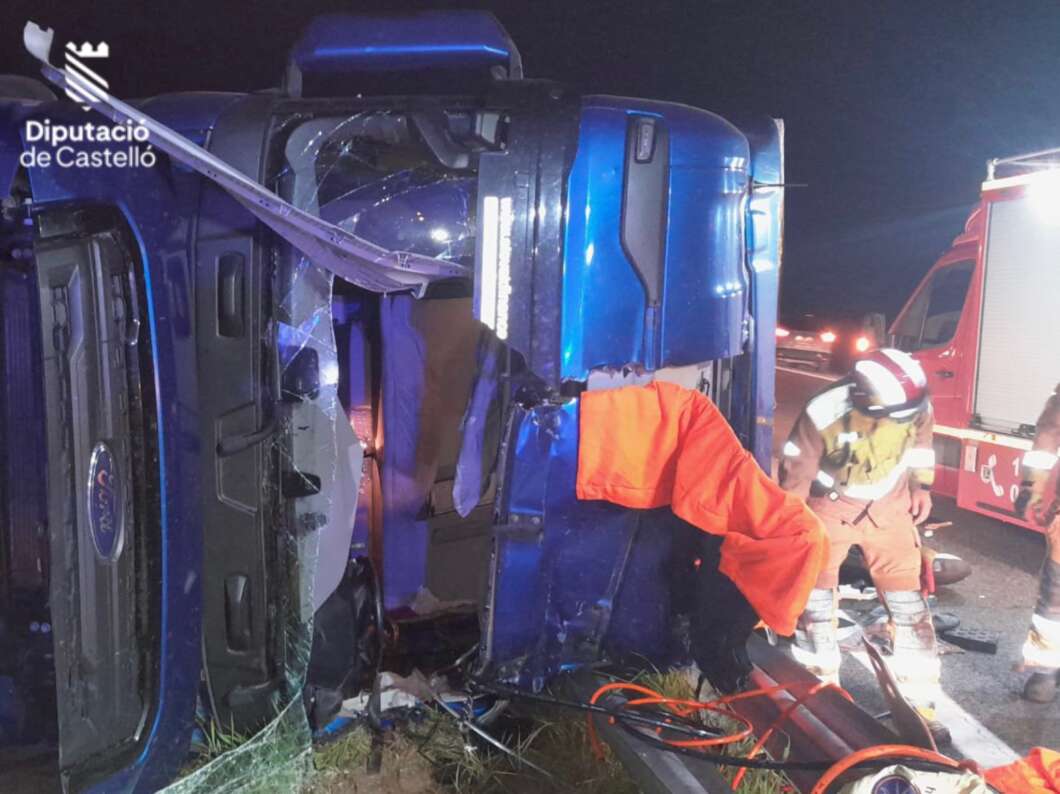 han intervenido en la excarcelación del conductor de un camión accidentado en AP7 dentro del término municipal de Torreblanca.