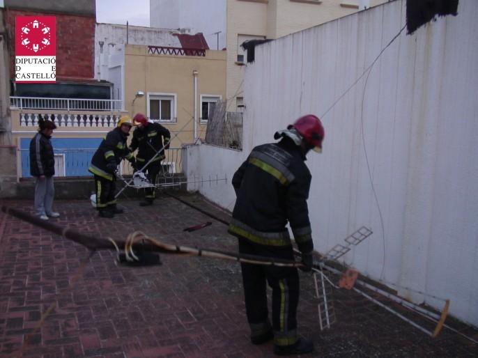 Desde el inicio del temporal y hasta las 11 horas de hoy, el Consorcio Provincial de Bomberos de Castellón ha actuado en un total de 20 servicios relacionados con el viento. Las tareas han consistido en la retirada de vallas publicitarias, planchas metálicas, cristales, antenas, árboles caídos, así como el saneamiento de fachadas en las que se habían producido caídas de cascotes.