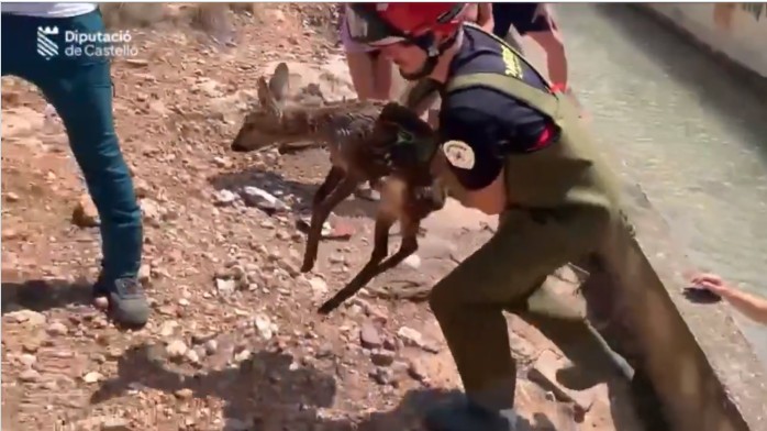 Los Bomberos rescatan a una cría de corzo de un canal de riego en Fanzara