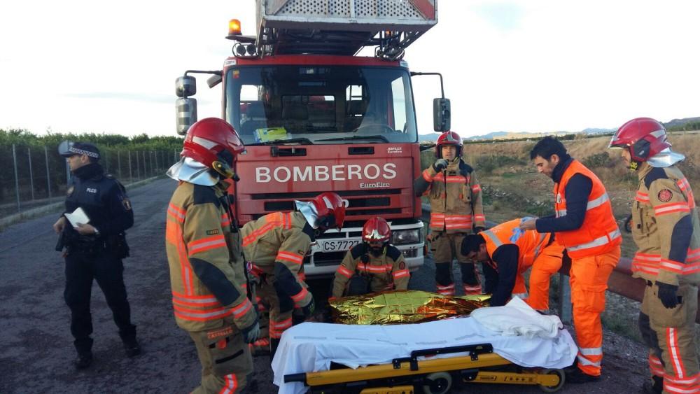 Los Bomberos Municipales y la Policía Local de Castellón han participado esta mañana en el rescate de un varón de 53 años que había caído al cauce del río seco a la altura del camino Molins. Los hechos se han producido sobre las nueve de la mañana cuando una persona que caminaba por el Camino La Mota que discurre paralelo al río seco ha divisado a un varón que se encontraba tendido sobre el mismo cauce e inmediatamente ha llamado al teléfono de emergencias 112 para alertar de la situación ya que le parecía que el hombre se encontraba malherido.