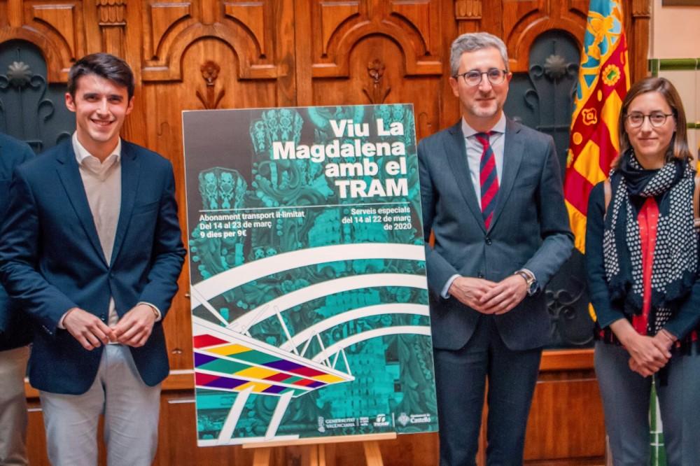 El conseller de Política Territorial, Obras Públicas y Movilidad, Arcadi España, ha presentado el 'Abono Magdalena', que por primera vez se pone en marcha, así como los servicios especiales que ofrece la Generalitat en el TRAM de Castelló desde el día 14 al 22 de marzo con motivo de la celebración de las fiestas de la Magdalena.