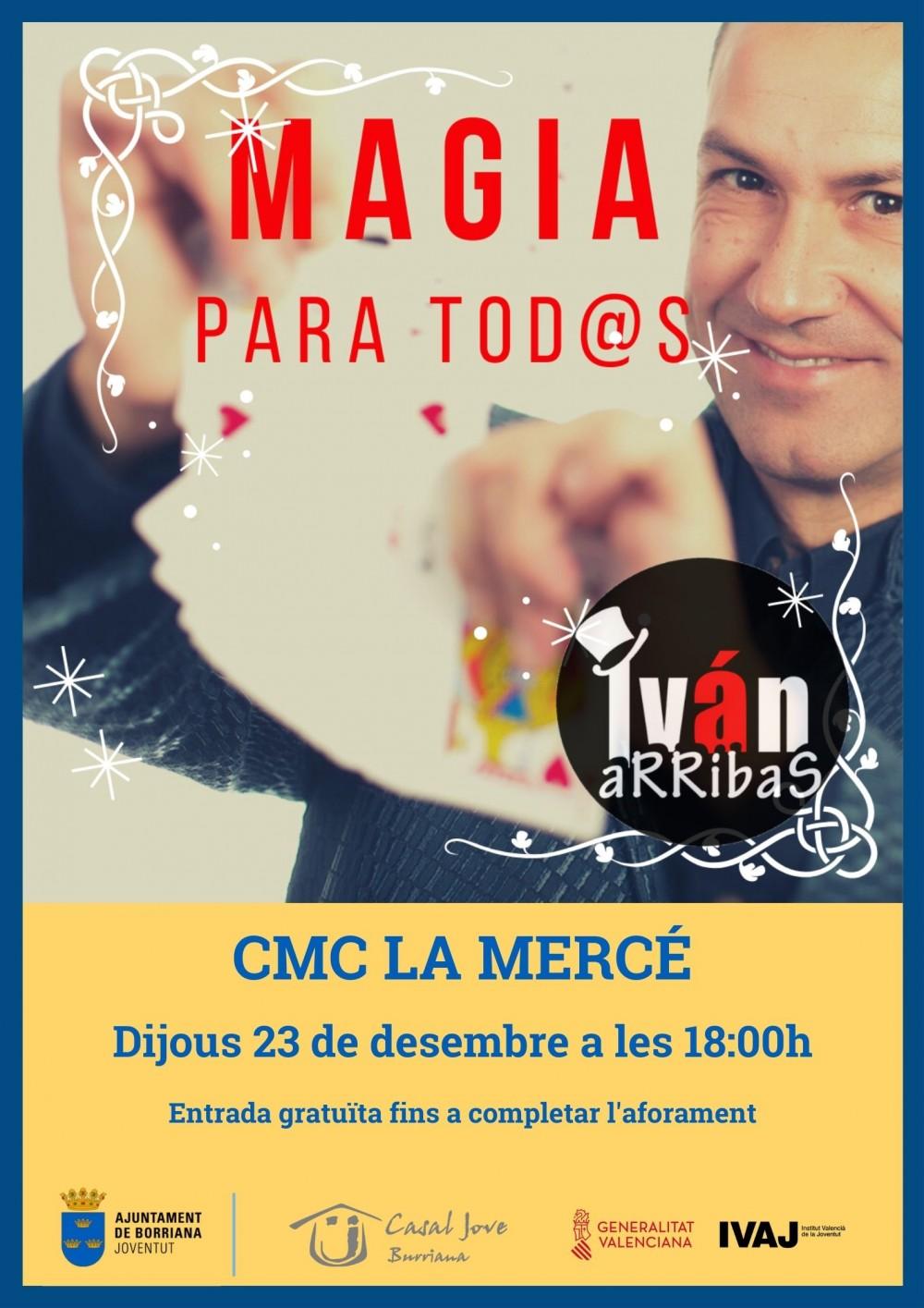 Les activitats per a les famílies del municipi preparades per Joventut s'estendran del 23 de desembre al 6 de gener, coincidint amb les vacances escolars, amb aforaments limitats i adaptades a les mesures sanitàries vigents. Així, el dijous 23 de desembre es podrà gaudir de l'espectacle gratuït de màgia Màgia per a tots, d'Iván Arribas, a les 18h al CMC la Mercè, fins a completar l'aforament permès i amb les mesures sanitàries que estiguen en vigor en el moment de la celebració
