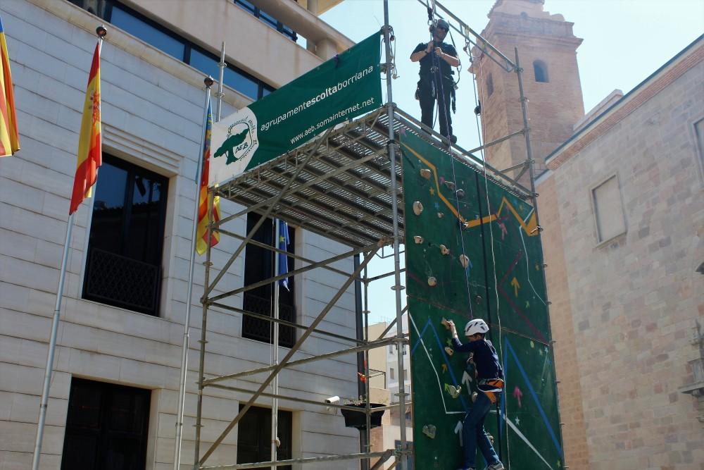 Com si d'una inauguració oficial es tractara, diversos membres de l'Agrupament i de l'empresa organitzadora de les activitats d'aventura que es desenvoluparien durant el dia, han descendit fent ràpel des del més alt del campanar amb la bandera i l'emblema de l'Agrupament onejant durant tot el seu descens. Ha sigut el tret d'eixida a vuit hores d'aventura en el Sender que s'havia habilitat en la plaça Major i en la qual xiquets i xiquetes de totes les edats han pogut practicar la seua habilitat a l'hora de circular pels coneguts com a ponts tibetans, o escalar amb tota la seguretat i tranquil·litat que ofereix el rocòdrom inflable en el qual qualsevol mal pas tan sols ha acabat amb la instal·lació d'aire esmorteint la caiguda.