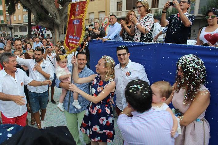 Poco a poco, el suelo del Pla se iba convirtiendo en una alfombra multicolor que ya no dejaba ver los adoquines, mientras que la regidora de Fiestas, Lluïsa Monferrer comenzaba bien pronto a entregar los primeros banderines acreditativos de los premios a las mejores carrozas.