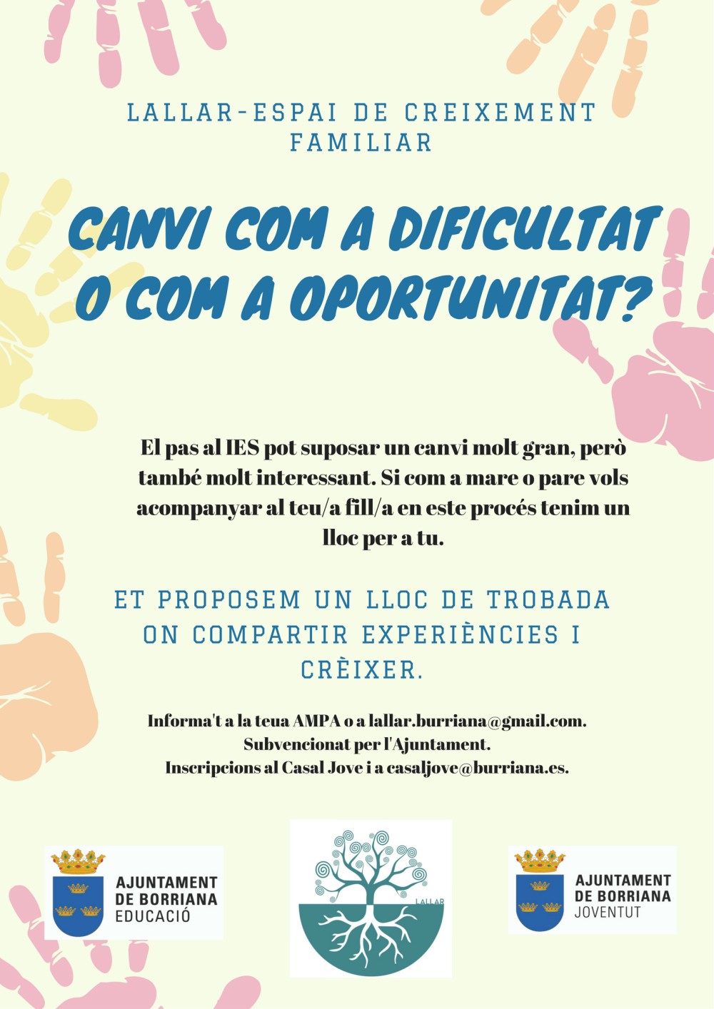 A partir del 6 de novembre les mares i pares dels i les joves nascudes en 2015 podran participar en les sessions setmanals on “compartir les experiències en el creixement dels fills i filles”