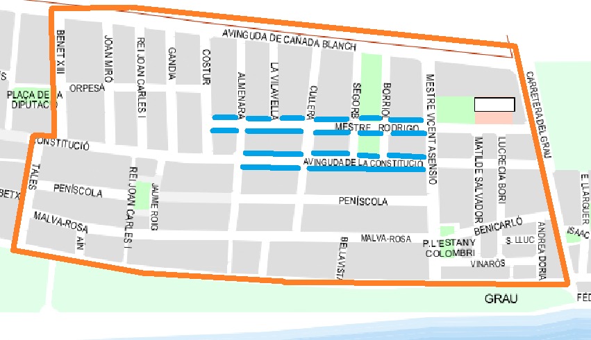 En la zona del Grau/Malva-rosa, els veïns de la zona d'influència delimitada entre la carretera del Grau, des del número 1 al número 45 (només imparells), l'Avinguda Mediterrània des del número 104 (carrer Tales) fins al número 175 (Grau) i l'Avinguda Cañada Blanch (des de la carretera del Grau a carrer Tales), podran beneficiar-se d'aquestes acreditacions.