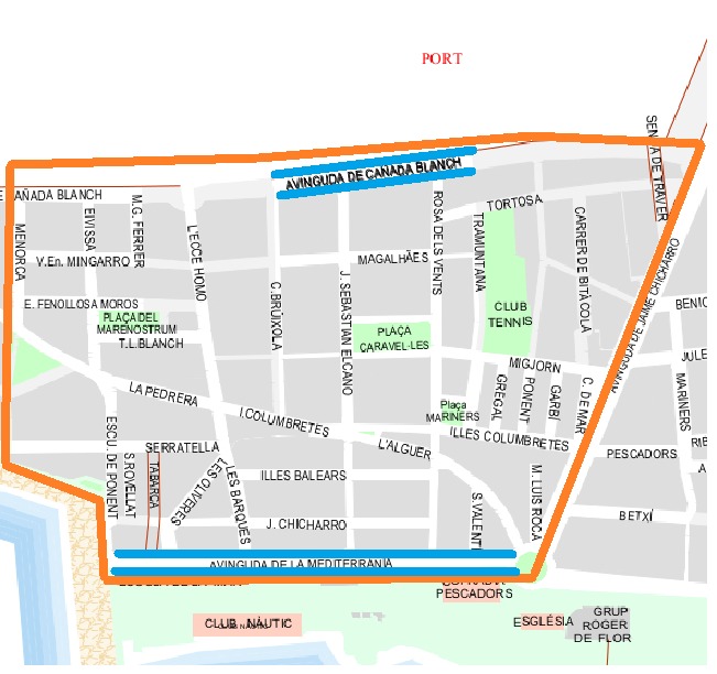 En quant a la zona del Port, els veïns de la zona d'influència delimitada entre l'avinguda Jaime Chicharro (entre la rotonda del port i l'avinguda Cañada Blanch), l'avinguda Cañada Blanch (entre l'avinguda Jaime Chicharro i el carrer Menorca), l'avinguda de la Mediterrània des del número 1 al 35 i el carrer Menorca des de l'avinguda Cañada Blanch fins a l'avinguda de la Mediterrània, podran sol·licitar les acreditacions.