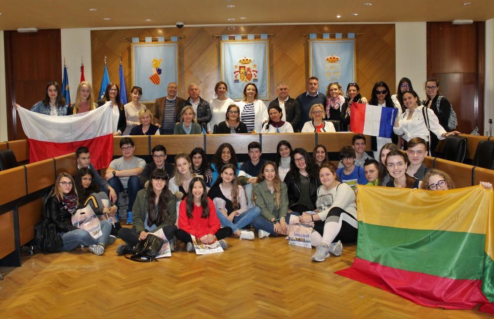 L'IES Jaume I de Borriana acull durant aquesta setmana al voltant de 40 estudiants del programa Erasmus Plus. Hui els ha fet una xarrada l'alcaldessa, Maria Josep Safont, i l'hi han preguntat sobre la gestió municipal i a varis dels regidors i regidores que han volgut estar presents en la visita al consistori.