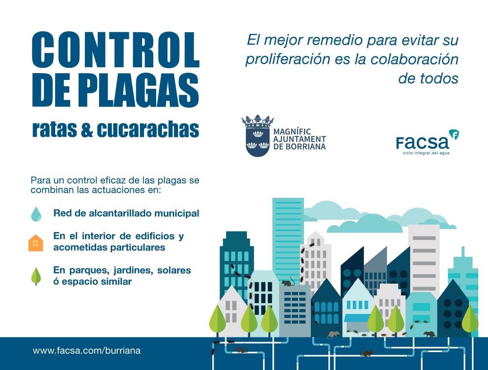 El Ayuntamiento de Burriana y la empresa concesionaria del tratamiento y abastecimiento de aguas Facsa han editado un díptico informativo que tiene como objetivo concienciar a los ciudadanos de la localidad sobre la importancia de prevenir posibles focos de ratas y cucarachas, tanto en el alcantarillado municipal como en sus hogares, además de aportar consejos prácticos en esa línea.