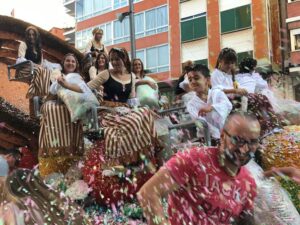 Pocas formas hay más alegres que la que desde hace años sirve para despedir las Fiestas de la Mare de Déu de la Misericòrdia en Borriana. La Batalla de Flors supone una explosión de color y alegría difícil de alcanzar por otro tipo de actos de clausura de unas celebraciones patronales. Y en la edición de 2017 ha vuelto a repetir el éxito de participación de cientos y cientos de vecinos y vecinas de Borriana que han querido despedir las diez jornadas festivas con toda la expresión artística, el colorido y la fiesta que han transmitido las carrozas a su paso por las diferentes calles del centro de la ciudad hasta alcanzar El Pla, donde en la tribuna de autoridades, la concejala de Fiestas, Lluïsa Monferrer, o la alcaldesa Maria Josep Safont estaban acompañadas por una nutrida representación municipal además de la presencia de autoridades como el Director General de Obras Públicas, Carlos Domingo, o la Directora General de Internacionalización, Maria Dolores Parra.