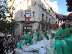 Kilos y kilos de confeti han ido cubriendo las calles de Borriana y de forma especial la plaça de El Pla, que pocas horas antes había sido completamente adecuada para la celebración de la Batalla de Flors, con la retirada tanto de los cadafales como de la arena y las infraestructuras del recinto taurino por parte de los operarios de Vía Pública. Tras una primera vuelta al Pla donde tanto el público como las autoridades han podido observar de cerca el trabajo de las comisiones falleras en la elaboración de las carrozas, el jurado ha podido sopesar e intercambiar opiniones para acabar eligiendo el trabajo de la Falla Barri València como ganador, revalidando así el premio conseguido el pasado año. El segundo premio ha sido para la Falla Societat Sant Josep, seguida del Club 53 que ha completado el podio. A continuación, la Sociedad Centro España ha sido cuarta, la Falla Don Bosco quinta, y La Bosca, Plaça Chicharro y Societat de Caçadors han completado la lista de carrozas premiadas.