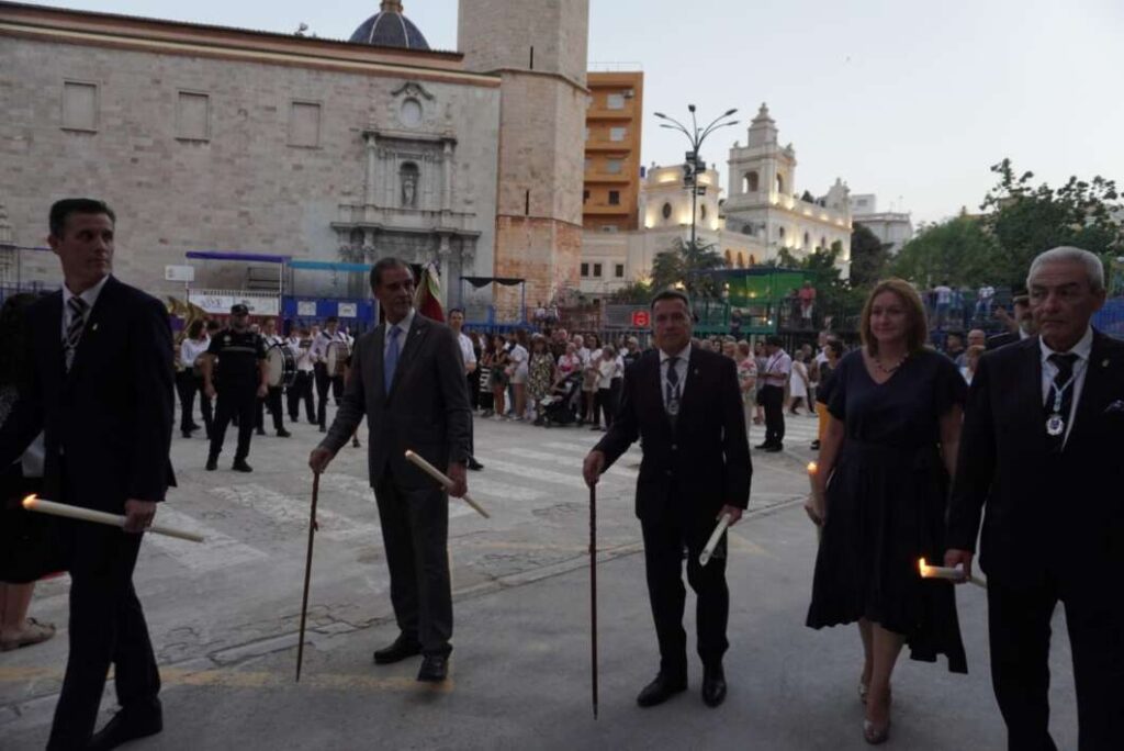 A la multitudinària processó han assistit, l'alcalde de Borriana, Jorge Monferrer Daudí, el senador Vicente Tejedo, la directora d'atenció primària de la Generalitat Valenciana, Eva Suárez, membres de la corporació municipal, així com una delegació de les Belleas del Foc d'Alacant.