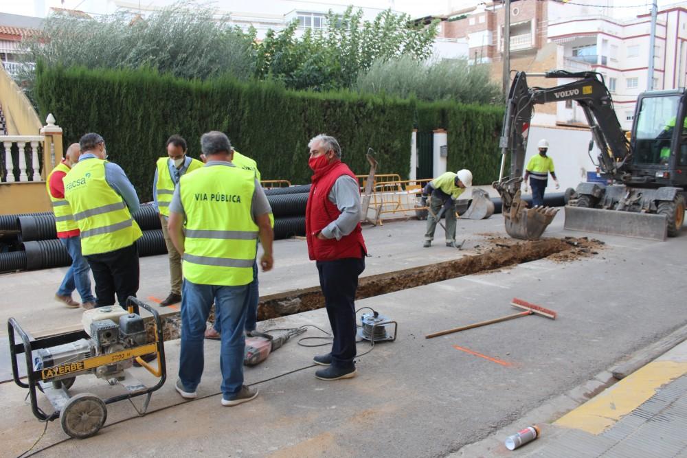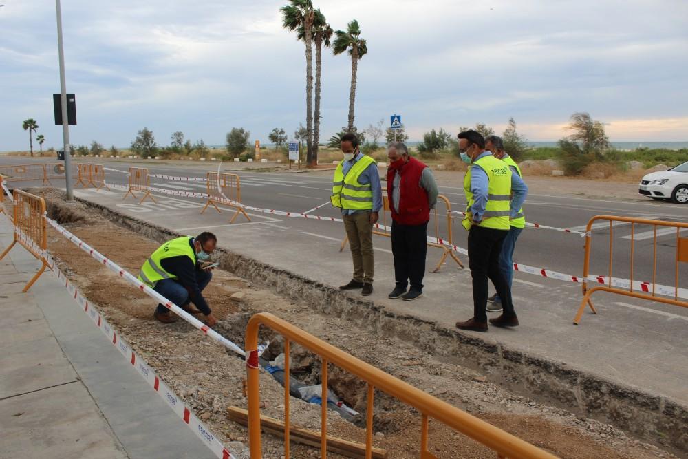 Vicente Aparisi, acompanyat per representants de Facsa, l'empresa concessionària del servei d'aigües en la localitat, han visitat els últims treballs de renovació de la xarxa de proveïment i clavegueram, que s'estan realitzant al carrer de la Misericòrdia, i en la zona marítima al carrer Illes Balears i a l'avinguda Mediterrània.