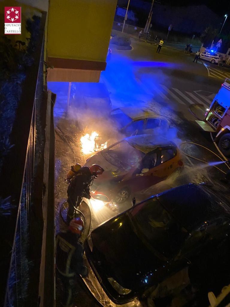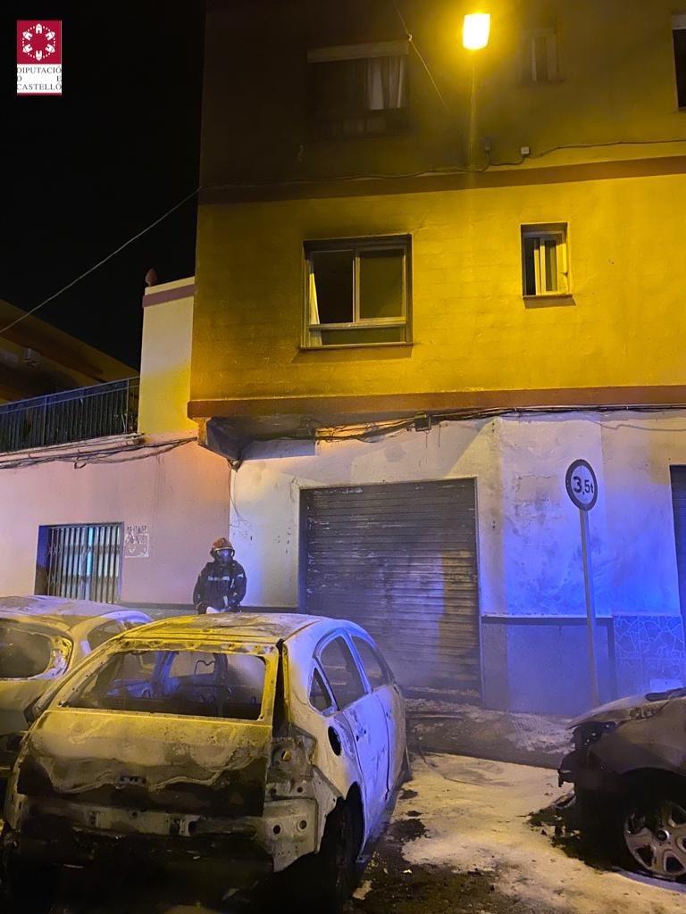 Efectivos del parque de Bomberos de la Plana Baixa han intervenido esta madrugada en un incendio que ha afectado a 3 vehículos que estaban en la vía pública en Borriana.