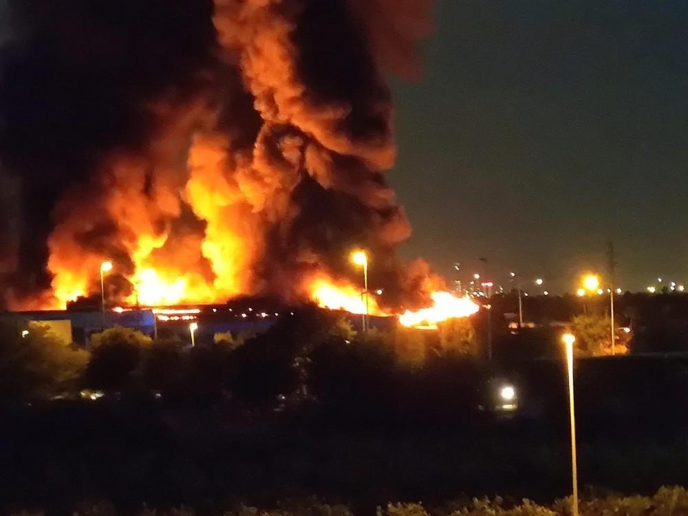 Se produce un incendio en un almacén industrial de Borriana. El fuego afecta a, prácticamente, la totalidad del almacén.