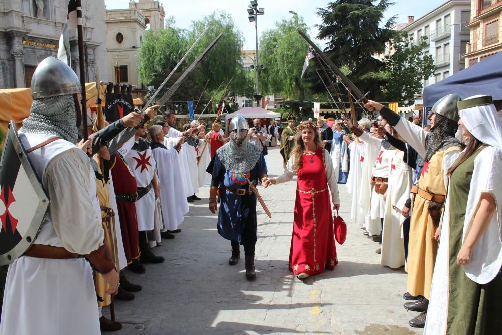 El sábado por la tarde, unas sesenta Damas y Caballeros Cidianos y Templarios acompañarán al Cid y a Doña Jimena, y a los reyes Jaume I y Na Violant de Hungría en las Jornadas Medievales de la Reconquista. De esta manera, a las 17 horas dará comienzo el acto de Nombramiento de las nuevas Damas y Caballeros de la Hermandad de las Damas y Caballeros del Cid y Doña Jimena en Castellón, por parte del Caballero Mayor de la Hermandad, Hugo Giménez Hernández. De los nuevos miembros cabe reseñar al escritor abulense Carlos del Solo y su esposa María García. En este acto, Carlos del Solo presentará sus libros “El Cid Campeador: simplemente Rodrigo” y “Enrique IV: el último rey medieval”, de los cuales firmará ejemplares una vez finalizado el acto. También se otorgará el I Galardón “Babieca”, a Enric Safont Martínez, gran coleccionista del Cantar de Mío Cid y de la historia del Cid y del Rey Jaume I. Finalizará el acto con el Brindis Templario a la salud de los nuevos miembros de la Hermandad.