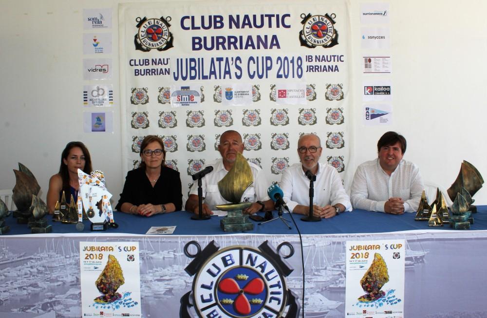 Els aficionats i aficionades a la vela tenen aquest cap de setmana una cita imprescindible en el calendari esportiu amb la vuitena edició de la Jubilata’s Cup. Els dies 16 i 17 de juny les aigües el Club Nàutic Borriana acolliran aquesta trobada que any rere any congrega a més regatistes. I avui s'ha celebrat en les instal·lacions del Club Nàutic de Borriana la presentació de l'esdeveniment, en la qual han estat presents el president del Club, Ximo Felius, l'alcaldessa de Borriana, Maria Josep Safont, el regidor d'Esports Vicent Granel, el diputat d'Esports, Luís Martínez, i la directora de les Escoles de la Mar de la Generalitat, Diana Saura.