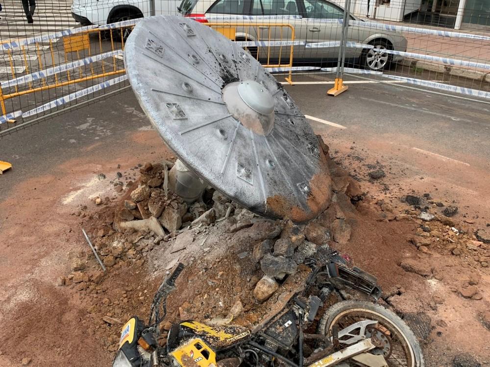 Borriana ha amanecido hoy con un peculiar visitante. Algunos lo han denominado OVNI (Objeto Volante No Identificado) al desconocer su procedencia y aparecer en medio de la calle María Teresa de Calcuta. Todo un misterio para los vecinos de la localidad que desde primeras horas de la mañana, y tras saber de la extraña aparición, se han acercado hasta esta vía, paralela a la avenida Cardenal Vicente Enrique Tarancón, para comprobar con sus propios ojos el misterioso objeto.