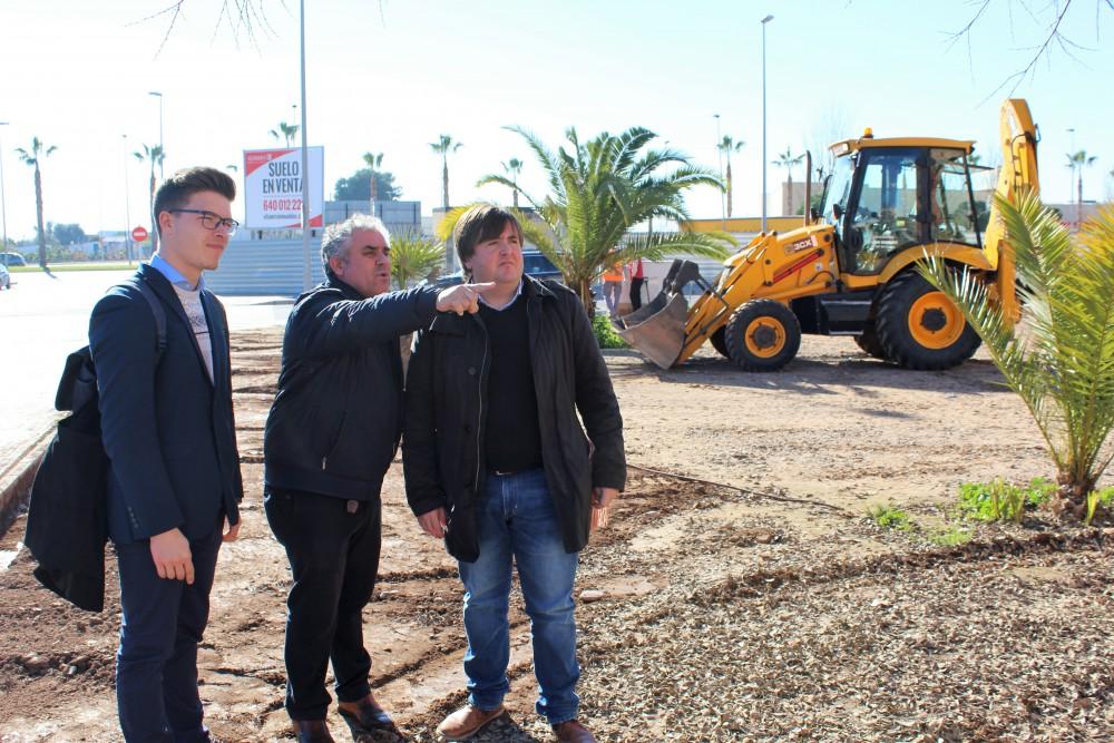La plaza de Santa Berta de Borriana tendrá un aspecto bien diferente al actual a partir del próximo año, y es que ya se han comenzado varias de las obras de adecuación y mejora del conjunto del parque para responder a las demandas vecinales que desde hace años reclamaban una mejora en las dotaciones con las que cuenta. Así lo han podido comprobar los representantes municipales de Vía Pública, Vicent Aparisi, y los tenientes de Alcalde, Vicent Granel y Cristofer Del Moral que durante la mañana han visitado las primeras obras que se están realizando en la parte suroeste del parque donde los operarios ya han comenzado a preparar el terreno para la construcción de un nuevo parque canino. Durante la visita, el máximo representante de Vía Pública, Vicent Aparisi, repasaba los pasos a seguir para la construcción de la nueva instalación para perros: “por el momento, ya se puede ver el efecto de las primeras horas de trabajos, ya que se ha allanado por completo esta zona del parque y se ha preparado todo el perímetro para instalar un pequeño muro y la valla que después servirá para cerrar el parque canino”. Además, Aparisi ha explicado que “hemos querido cerrar el parque unos metros antes a la zona más cercana a las viviendas, con el objetivo de evitar posibles molestias y además, facilitar el paso y la circulación en el conjunto de la plaza”.