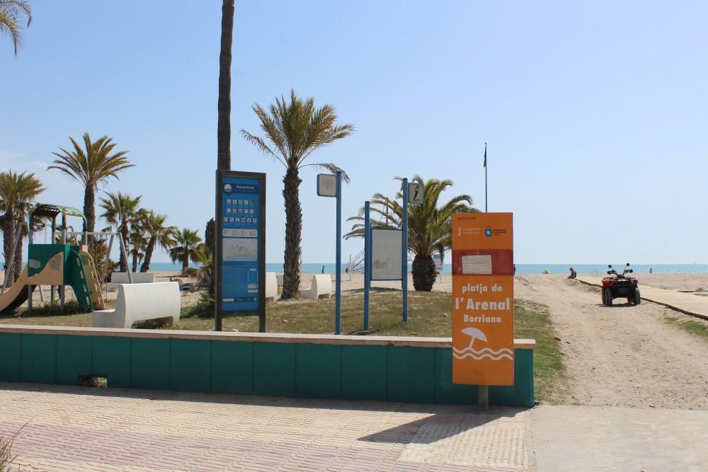 Entre les mesures que s'han adoptat a les platges de Borriana, l'alcaldessa ha assenyalat les relatives a sistemes de control i ordenació de l'aforament a través de drons i mitjançant el reforç de la vigilància amb una patrulla de la Policia Local fixa a la platja, per al control d'accés i aforament, i del correcte compliment del codi de conducta per part de les persones usuàries. Així mateix, s'han adequat passarel·les d'accés dobles d'entrada i eixida i s'ha establert un dispositiu de neteja i desinfecció periòdica de tots els elements de les platges.
