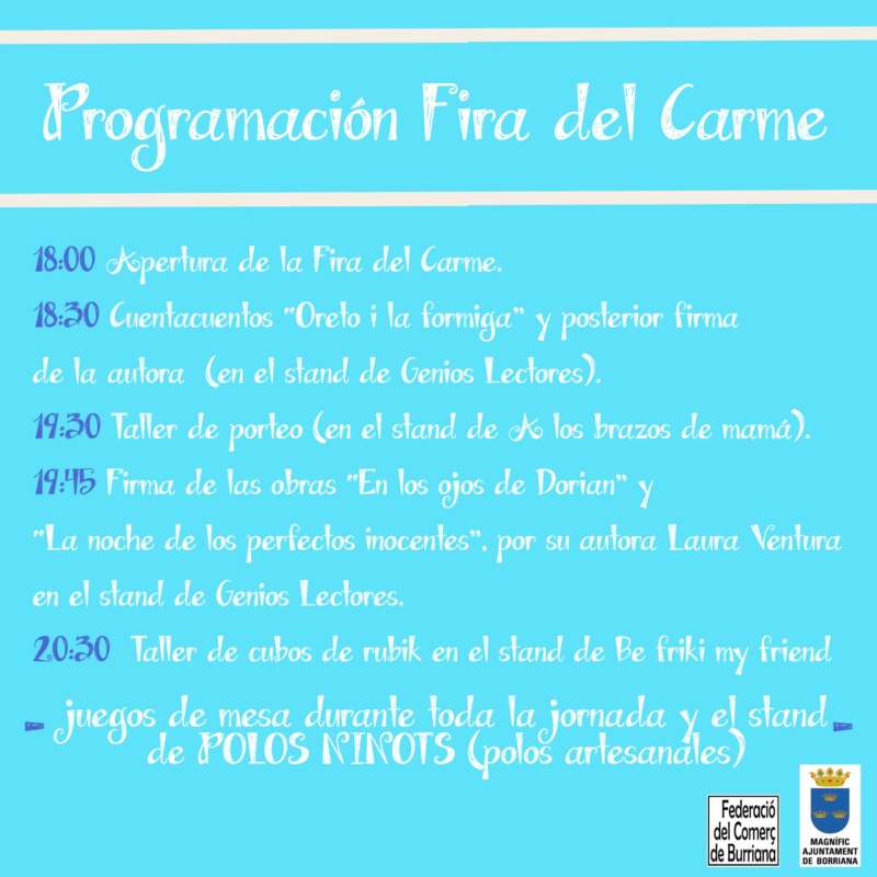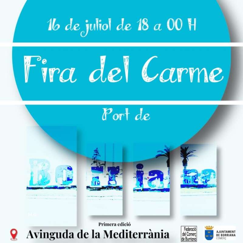 La Federació de Comerç de Borriana, amb l'Ajuntament de Borriana, ha organitzat la primera Fira del Carme que se celebrarà dissabte que ve 16 de juliol de 18h a 24h en l'avinguda de la Mediterrània del Port de Borriana.