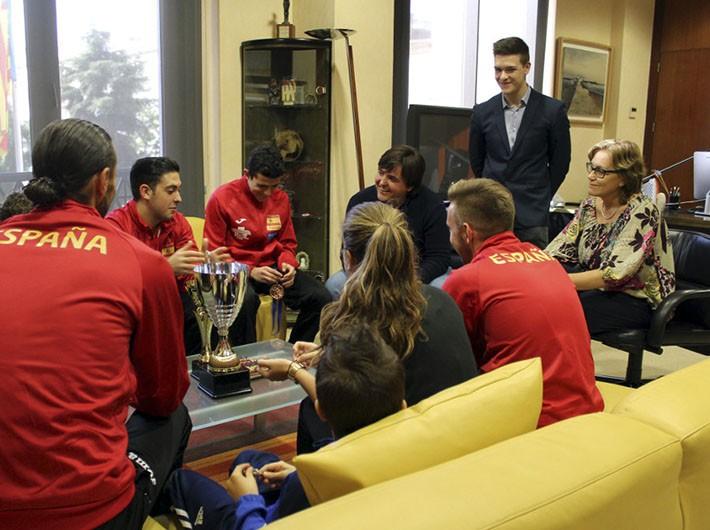 Los deportistas burrianenses de Fútbol-Tenis, un deporte que nace en Borriana y que no está federado en nuestro país, han sido recibidos por la alcaldesa, Maria Josep Safont; el concejal de Deportes, Vicent Granel; y el concejal de Participación Ciudadana, Cristofer de Moral.
