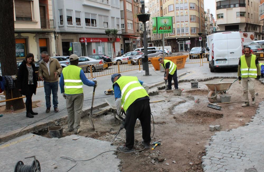 Fins a sis treballadors contractats per a Via Pública a través del Pla d'Ocupació Encord s'encarregaran dels treballs d'extracció, neteja i col·locació de les llambordes que conformen el sòl de la plaça
