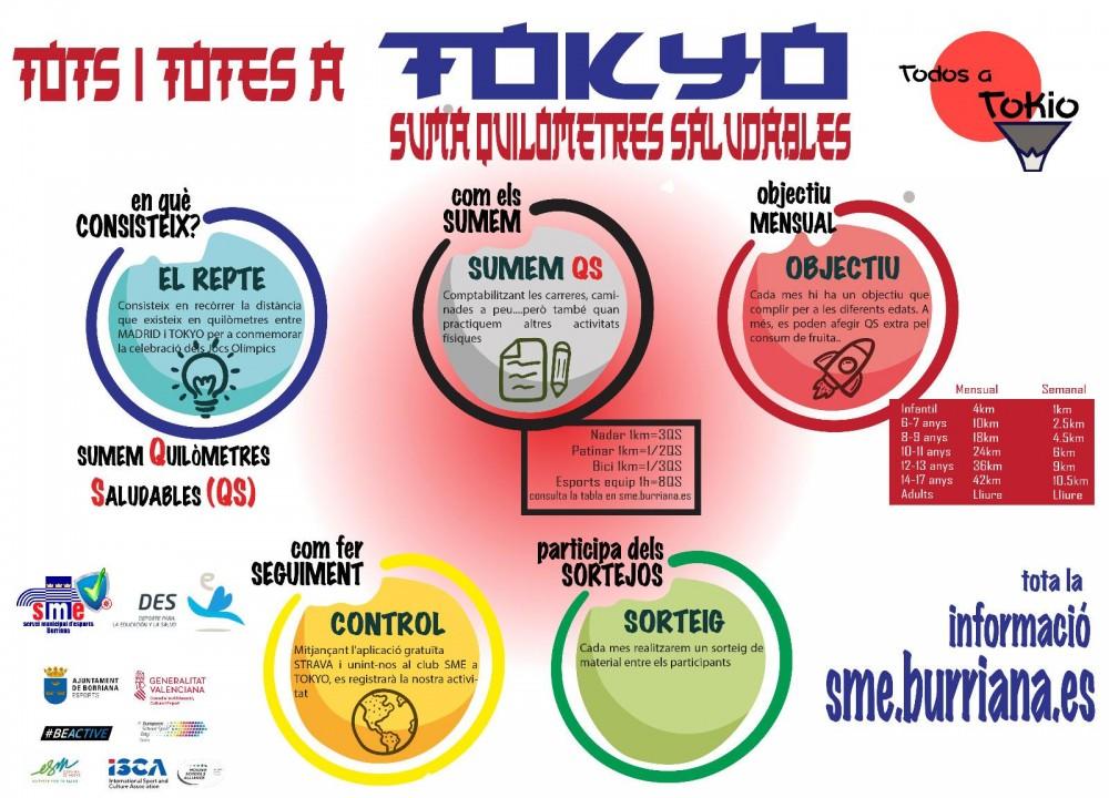 El Servei Municipal d’Esports (SME) de Borriana se suma al repte 'Tots a Tòquio' Suma quilòmetres de salut! posat en marxa per l'ONG Esport per a l'Educació i la Salut (DES), amb la finalitat de sensibilitzar la societat sobre la necessitat d'actuar tots junts contra el sedentarisme i el sobrepès o l’obesitat.