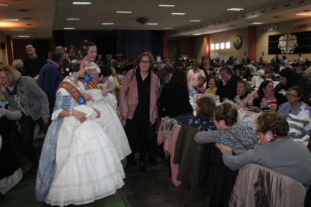 Les representants de l’Associació de Bolilleres Mig Punt de Borriana, els qui al costat de la regidoria d'Igualtat s'han encarregat de l'organització de la Trobada rebien tant a la representació municipal com a les Reines Falleres, Mar Zamora i Anne Alós, els qui han pogut veure a escassos centímetres el treball dels veloços dits de les bolilleres a l'hora confeccionar una peça amb la qual totes i cadascuna d'elles sempre treballen de forma global, ja que es distribueix un patró que la gran majoria confecciona durant el matí.