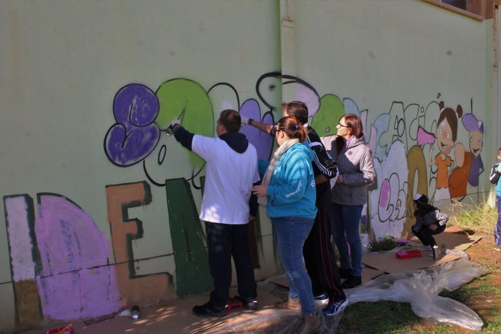 Dins dels diferents col·lectius i els centres educatius que s'han implicat en la commemoració del 25-N, durant la jornada d'avui també ha destacat el projecte que els joves del projecte Pineo de Creu Roja han dut a terme en el mateix complex esportiu de la Bosca. Entre activitats de conscienciació i oci per als més xicotets i xicotetes en relació amb el projecte de “La Comunitat”, han volgut sumar un grafiti col·laboratiu sota la direcció de Paco Garrido i Joaquín Miquel Hidalgo en la mateixa entrada del pavelló, interrelacionant la commemoració del 25-N amb la de la jornada dedicada a la defensa dels drets dels xiquets i xiquetes, el 20 de novembre, els qui també directament són els principals afectats en situacions de violència masclista.