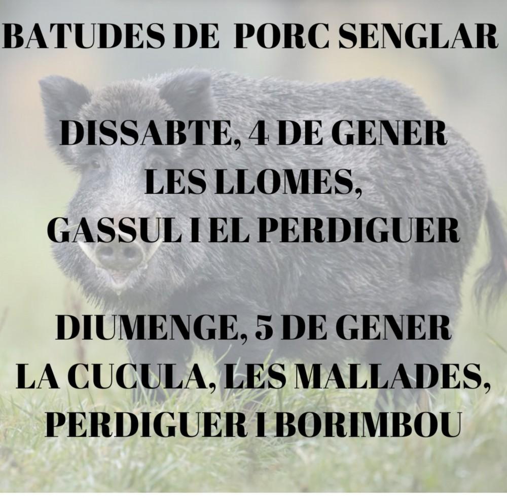 Les batudes es desenvoluparan el dissabte 4 de gener en la zona de Les Llomes, Gassull i el Perdiguer.