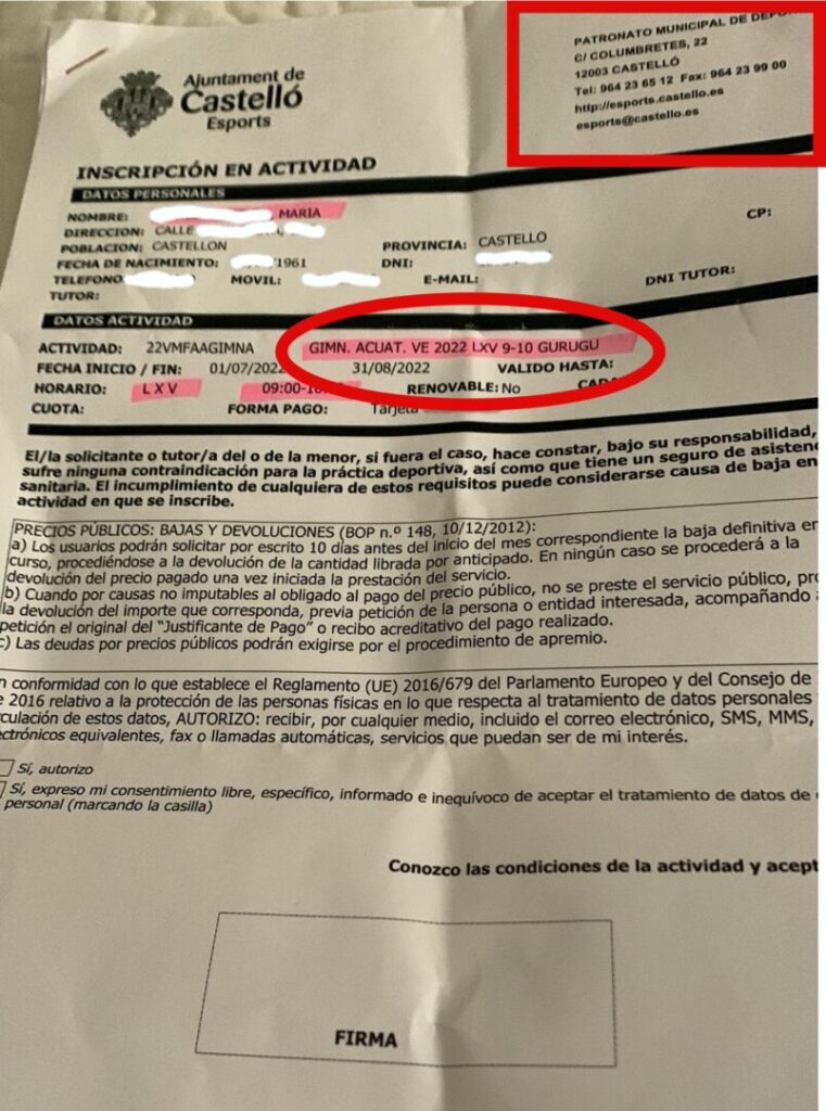 Claro, señalaban fuentes municipales, cuando Braina escuchó hablar de un curso de Aquagym dijo lo que de verdad había, que el Patronato de Deportes no realiza esa actividad...