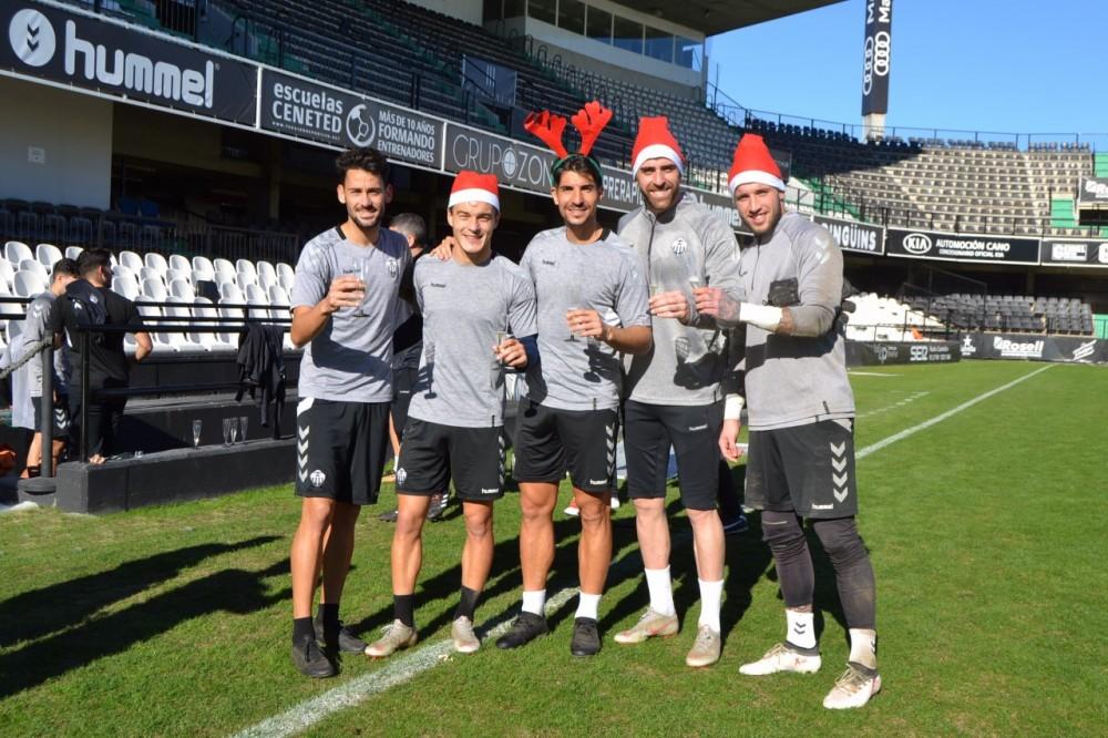 Fue el último entrenamiento de 2018 y se brindó para que el 2019 sea el de la consolidación del equipo en Segunda División B, después del penoso arranque liguero que le costó el cargo a dos entrenadores (Sergi Escobar y David Gutiérrez). Ahora con Óscar Cano y con los refuerzos que lleguen en el mercado de invierno se intentará salir de las plazas de descenso a Tercera.