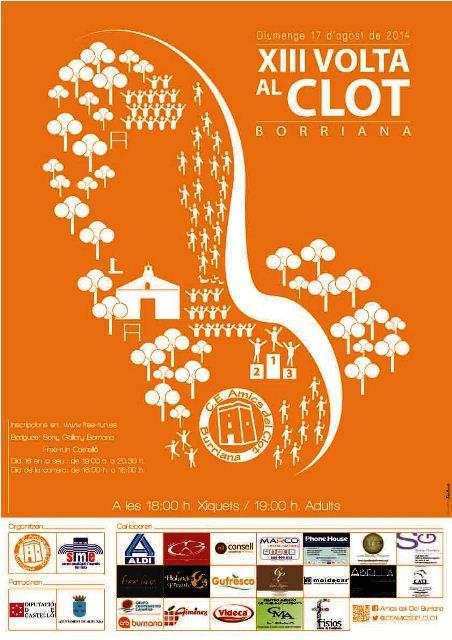 El Club Esportiu Amics del Clot -con la colaboración del Servei Municipal d’Esports y el patrocinio del Ayuntamiento de Burriana y la Diputación Provincial de Castellón- organiza el domingo 17 de agosto la decimotercera edición de la Volta al Clot, una prueba atlética que se ha convertido en una clásica del verano en Burriana y en la que pueden participar tanto adultos (6.000 metros) como los más pequeños, con varias distancias a su alcance.